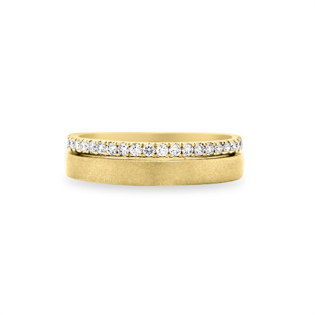 A timeless satin finish band is paired with a dazzling diamond band to create this beautiful ring.