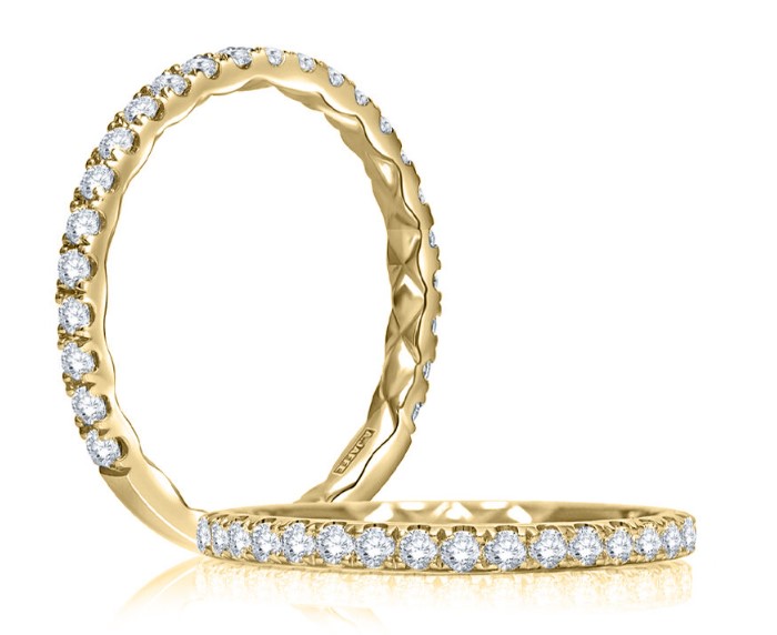 All A.JAFFE wedding bands are available in platinum, white, yellow or rose gold.