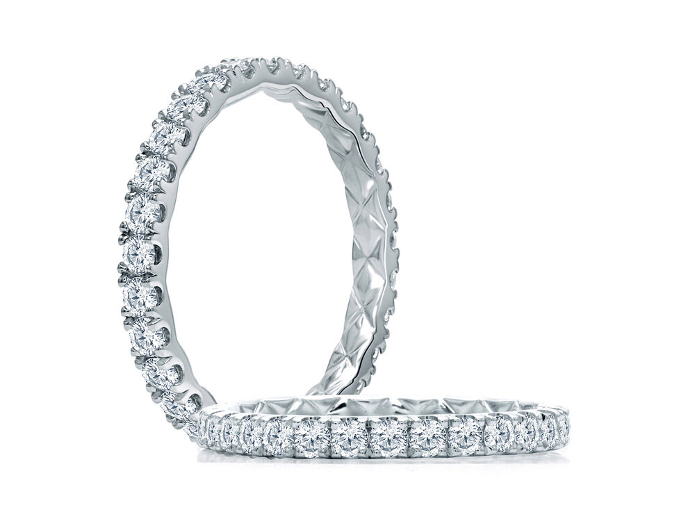 All A.JAFFE wedding bands are available in platinum, white, yellow or rose gold.