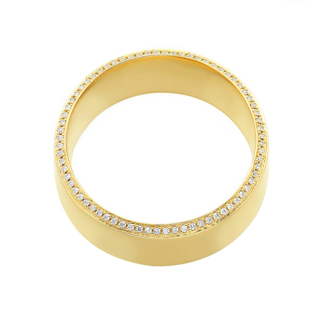 Polished 18K yellow gold is matched with two sides of petite sparkling diamonds.