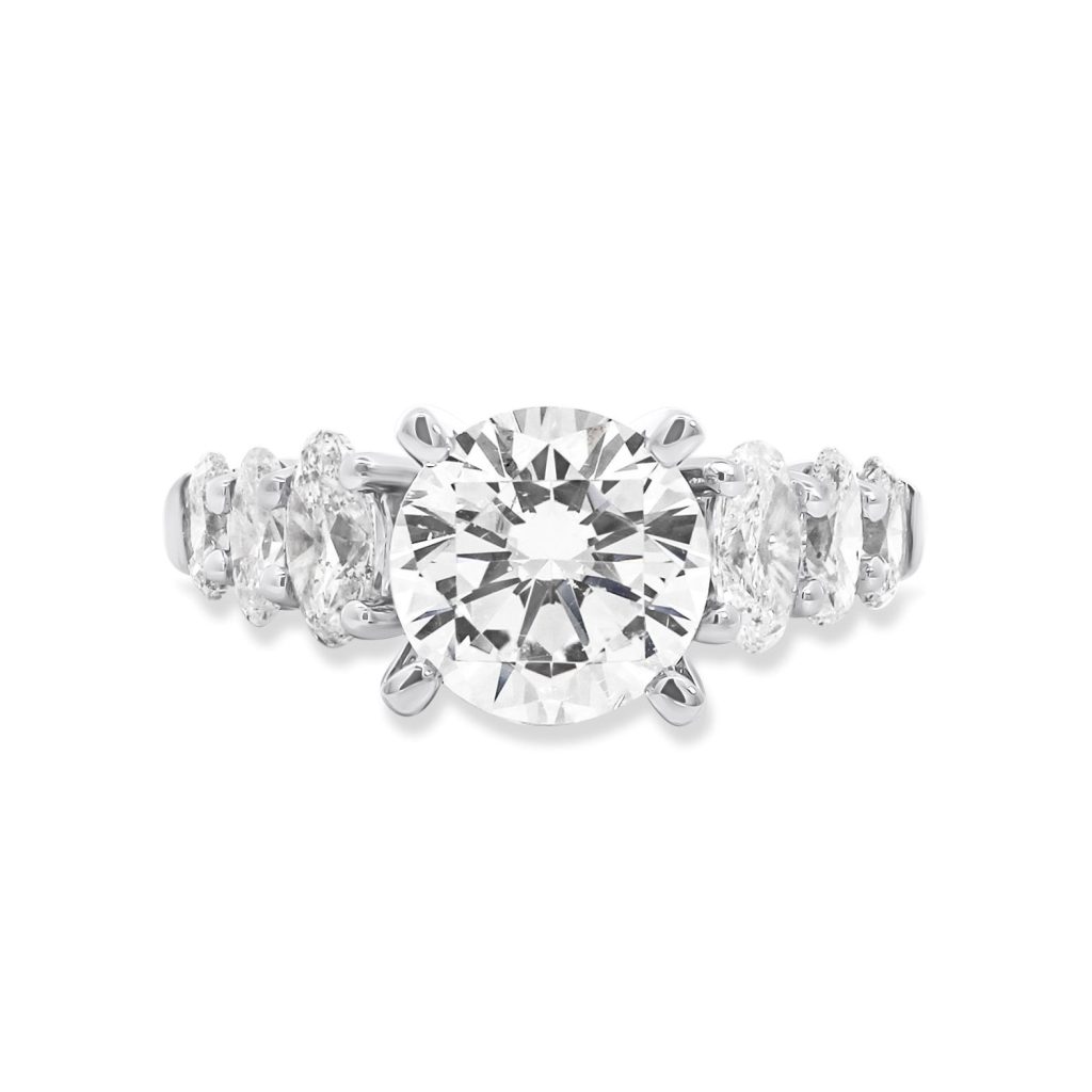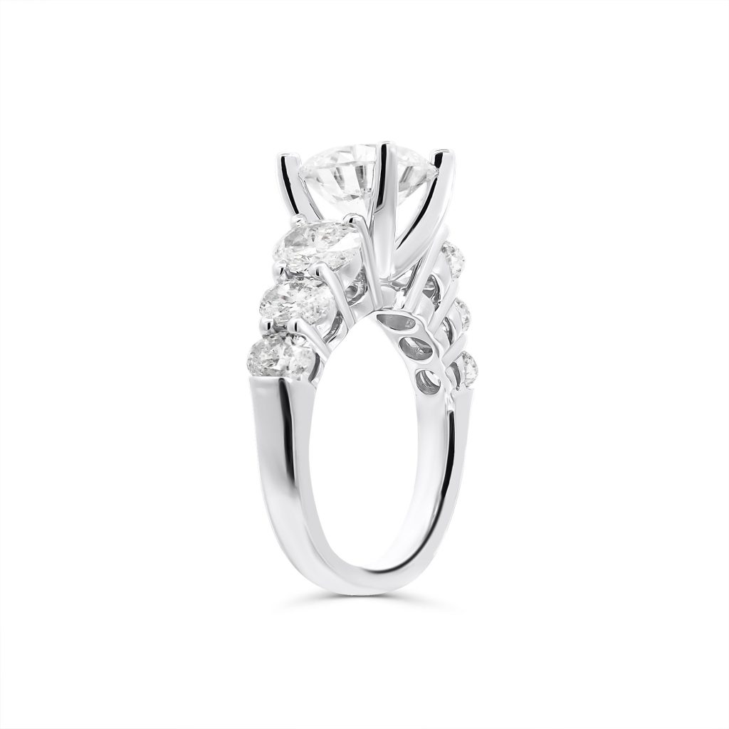Dazzlinlg oval diamonds are set on either side of the center stone, creating a big look for your bridal set!