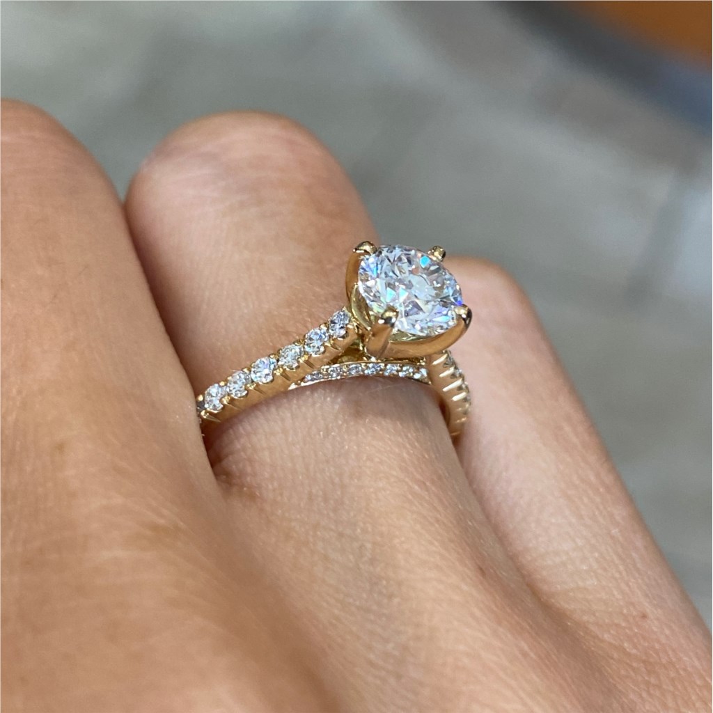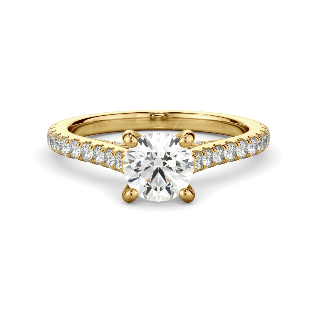Only the best diamonds are set in this timeless and one of a kind engagement ring. Round diamonds lay in a beautiful arch, holding up your precious center stone!