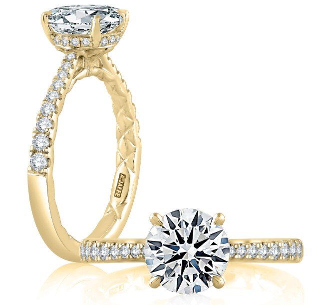 From the Art Deco collection comes this Graduated Diamond Engagement Ring where the diamond pavé tapered shank serves to draw your eyes to the center stone. The gallery also sparkles with diamonds while the interior of the band includes our iconic quilted texture to provide a fantastic fit and a luxurious feel thanks to a design that prevents spinning and facilitates airflow.