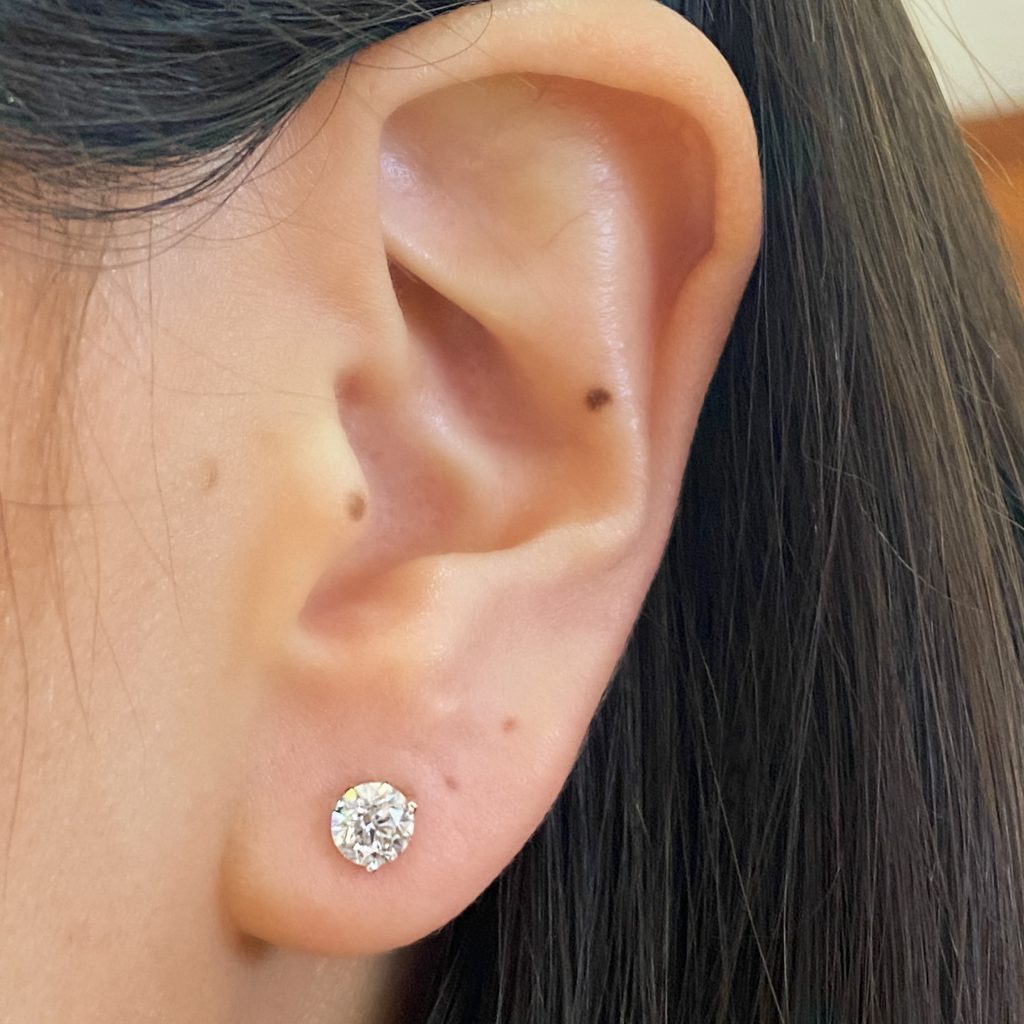 Classic martini style studs are set with almost 1ct stunning round diamonds.