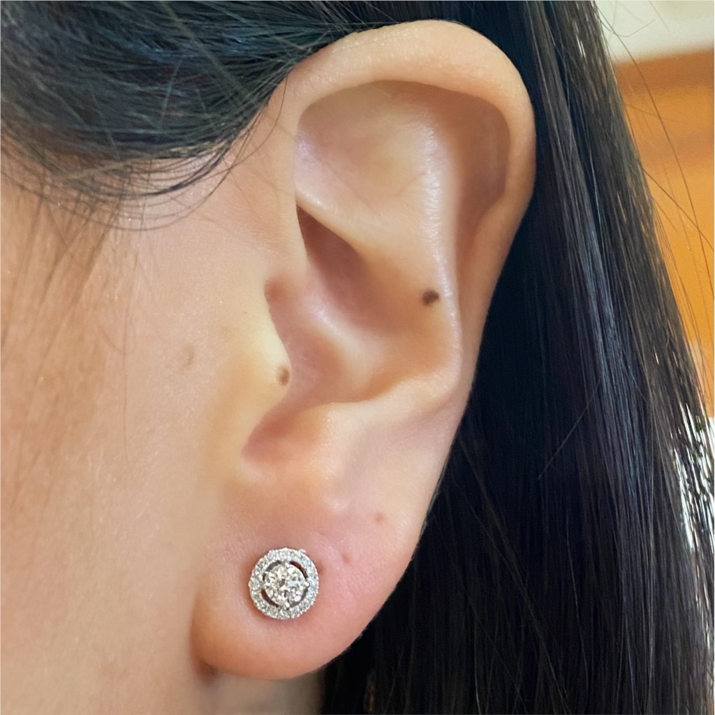 A classic pair of diamond studs, but with a dazzling diamond halo.