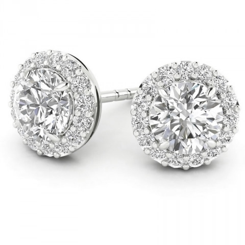 White Gold Diamond Halo Stud Earrings