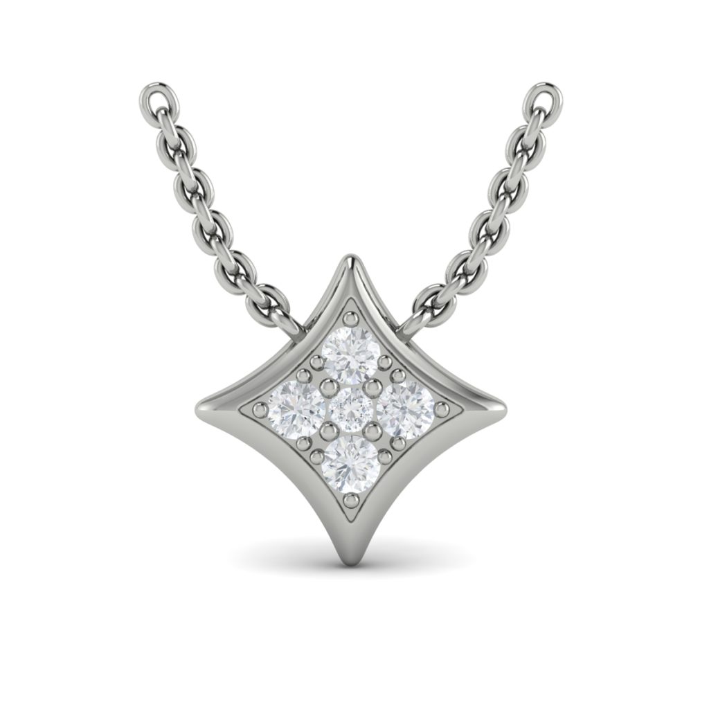 Five sparkling diamonds rest at the center of this iconic white gold star.
