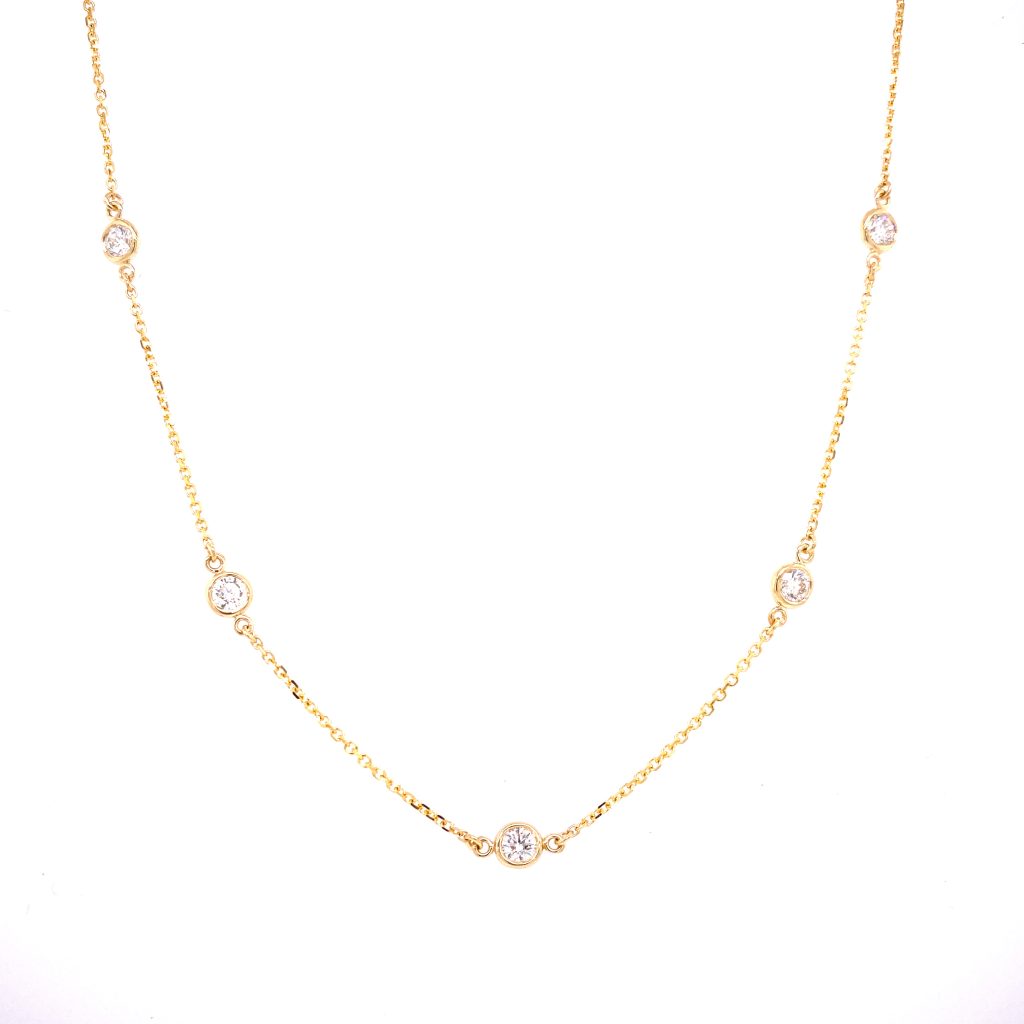 Beautiful round diamonds are set in this yellow gold diamond by the yard necklace.