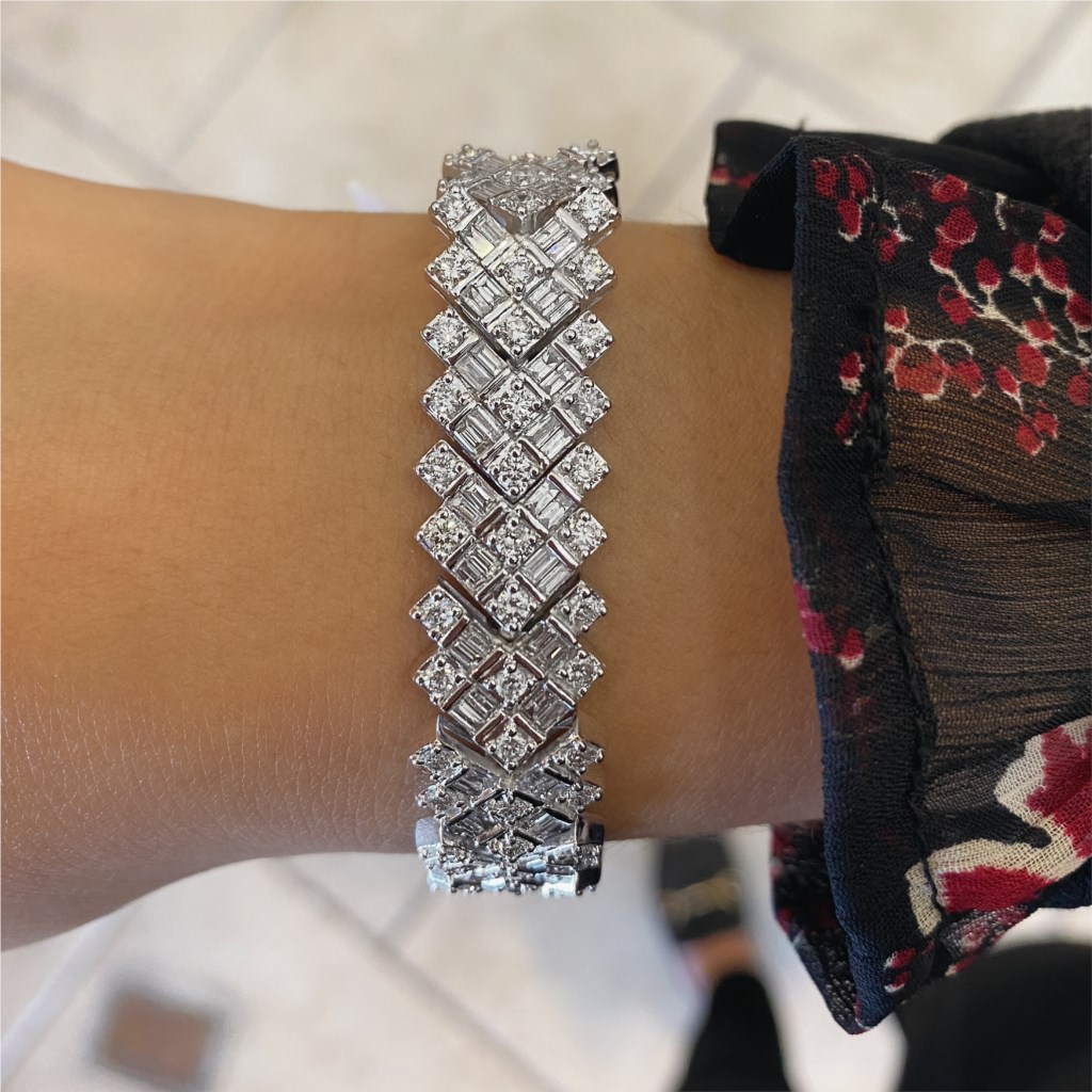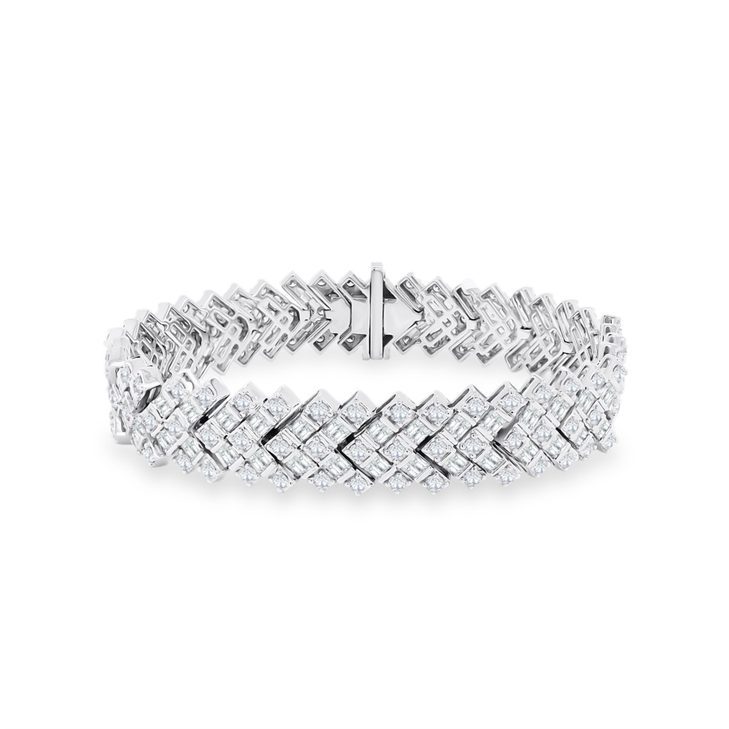 Various shapes of dazzling diamonds create this stunning cocktail bracelet.