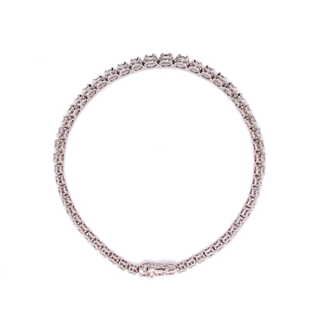 High polished white gold give this tennis bracelet a stunning and uniform look, all set with dazzling round diamonds.